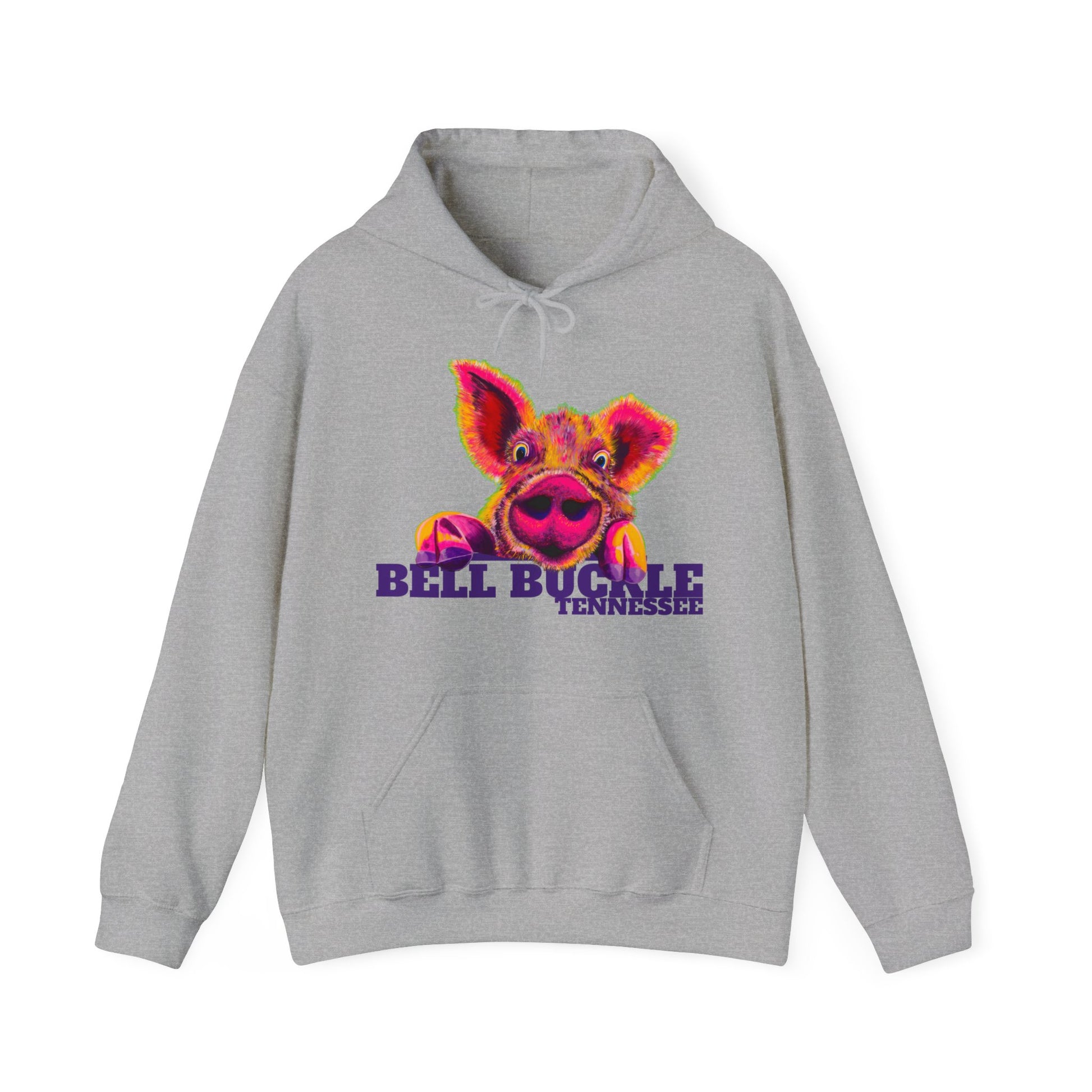 We just LOVE this little pig based on an original painting by Laurie Geisen!  Laurie's art is taking the world by storm and what better way to display some cool art that on your clothes....from Historic Bell Buckle!   This classic unisex hooded sweatshirt fits like a well-loved favorite, and with the added touch of style with Art by Laurie on the front it will quickly become the "go-to" hoodie in your closet. Soft cotton and quality print make users fall in love with it over and over again.