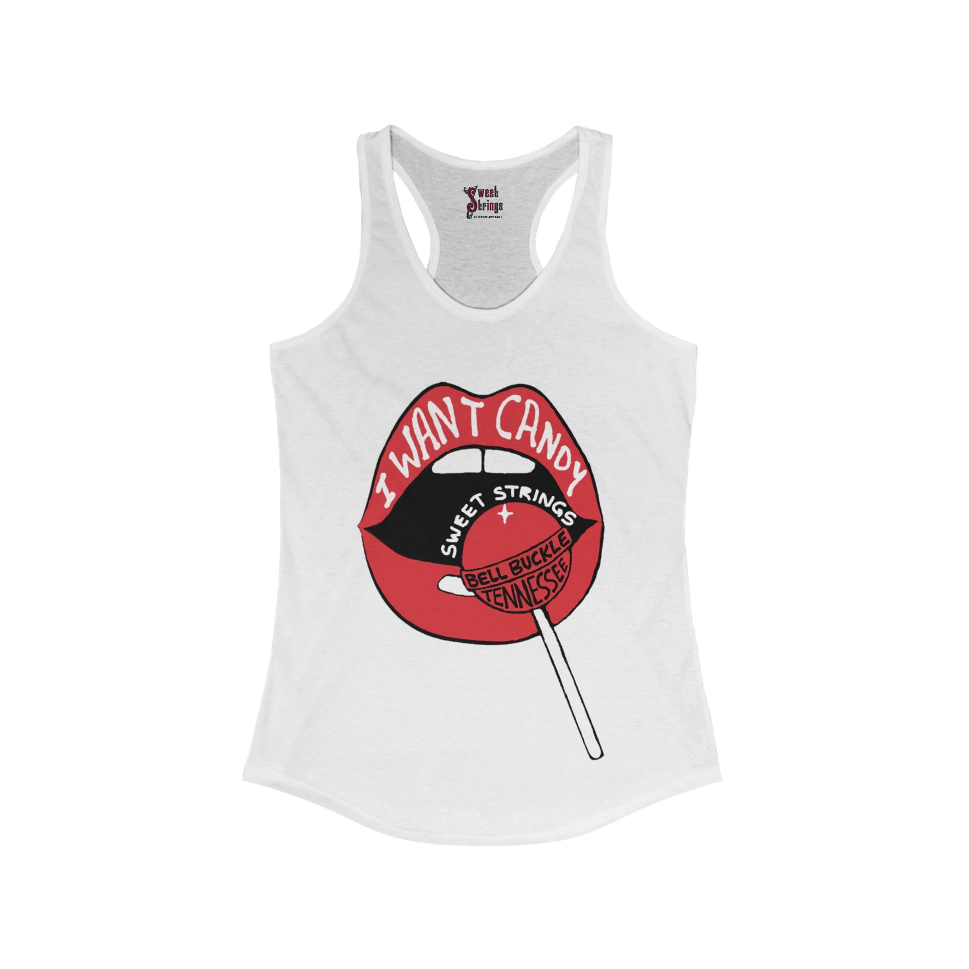 Sweet Strings "I Want Candy" - Women's Ideal Racerback Tank - FREE SHIPPING